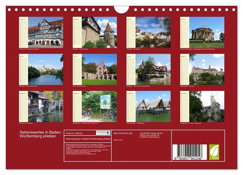 Entdecken Sie 12 lohnenswerte Reiseziele in Baden-Württemberg und holen Sie sich die schönsten Ansichten nach Hause. Ein Kalender mit PLANER-Funktion.