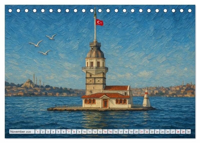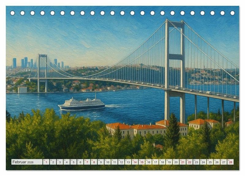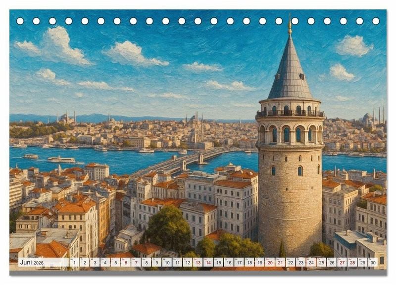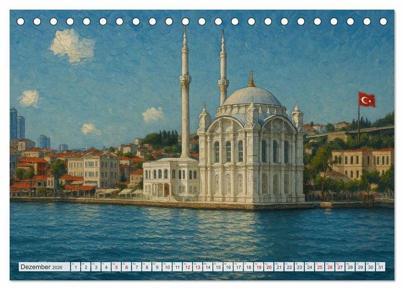 Tauchen Sie ein in die Magie Istanbuls - festgehalten in zwölf eindrucksvollen Kunstwerken in Ölmalerei - Mischtechnik und Impasto. Dieser exklusive Kunstkalender vereint leuchtende Farben, mediterranes Licht und die unverwechselbare Atmosphäre der Stadt am Bosporus. Entstanden mithilfe KI-generierten Bildern. Ob prachtvolle Moscheen, stille Gassen oder das funkelnde Wasser - jedes Motiv erzählt seine eigene Geschichte. Ein Kalender voller Emotion, Tiefe und zeitloser Schönheit, ideal für Kunstliebhaber, Reisefreunde und alle, die Istanbul mit dem Herzen sehen, Perfekt als stilvolles Geschenk oder Inspiration für jeden Tag.