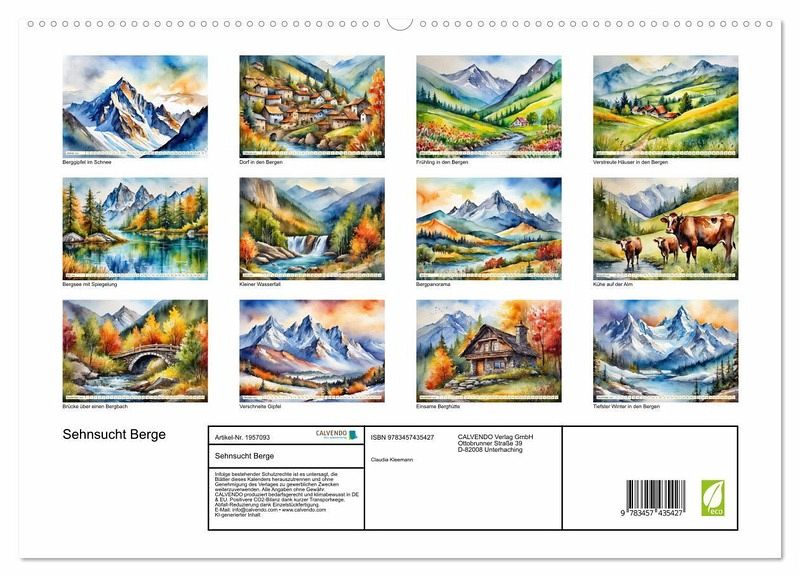 PREMIUM-LINIE - Brillanter Fotokalender mit 12 wunderschönen Motiven, Kunstdruck in Hochglanz in Museumsqualität.QUALITÄT - edle Materialien, stabile Rückwand mit 2 innovativen Einstecktaschen für eine optimale Präsentation an der Wand.NACHHALTIG - deutliche Abfallreduzierung durch bedarfsgerechte Einzelstückfertigung, umweltfreundliches FSC-zertifiziertes Papier, Produktion in Deutschland, klimabewusste Logistik.PERFEKTES GESCHENK - Kalender für Freunde und Familie, für Kinder und Erwachsene, jung und alt, zu Weihnachten, Geburtstag oder zwischendurch.Wundervolle von der Künstlichen Intelligenz generierte Aquarelle von Autor(in): Claudia Kleemann