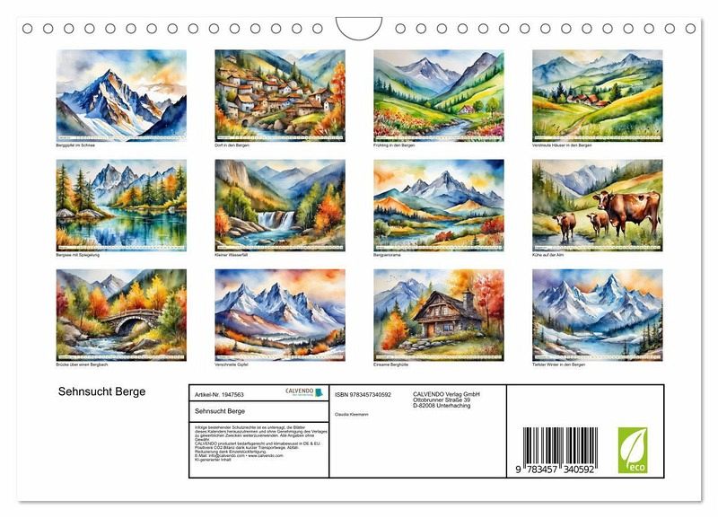 QUALITÄT - Hochwertiger Fotokalender mit 12 wunderschönen Motiven auf lichtbeständigem Bilderdruckpapier, robuste Spiralbindung mit Aufhängebügel.NACHHALTIG - deutliche Abfallreduzierung durch bedarfsgerechte Einzelstückfertigung, umweltfreundliches FSC-zertifiziertes Papier, Produktion in Deutschland, klimabewusste Logistik.PERFEKTES GESCHENK - Kalender für Freunde und Familie, für Kinder und Erwachsene, jung und alt, zu Weihnachten, Geburtstag oder zwischendurch.VIELFALT - Bildkalender in verschiedenen Formaten, z.B. DIN A5, DIN A4, DIN A3 sowie DIN A2. Ob Naturmotiv, Gemälde oder Fotos, ideal für ein persönliches Wohlfühlambiente.Wundervolle von der Künstlichen Intelligenz generierte Aquarelle von Autor(in): Claudia Kleemann
