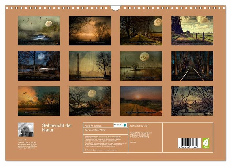 QUALITÄT - Hochwertiger Fotokalender mit 12 wunderschönen Motiven auf lichtbeständigem Bilderdruckpapier, robuste Spiralbindung mit Aufhängebügel.NACHHALTIG - deutliche Abfallreduzierung durch bedarfsgerechte Einzelstückfertigung, umweltfreundliches FSC-zertifiziertes Papier, Produktion in Deutschland, klimabewusste Logistik.PERFEKTES GESCHENK - Kalender für Freunde und Familie, für Kinder und Erwachsene, jung und alt, zu Weihnachten, Geburtstag oder zwischendurch.VIELFALT - Bildkalender in verschiedenen Formaten, z.B. DIN A5, DIN A4, DIN A3 sowie DIN A2. Ob Naturmotiv, Gemälde oder Fotos, ideal für ein persönliches Wohlfühlambiente.In einer Zeit, in der wir verlernten Momente zu genießen , erstellte ich Motive zum träumen von Autor(in): RavenArt / http://bildkunstravenart.jimdo.com