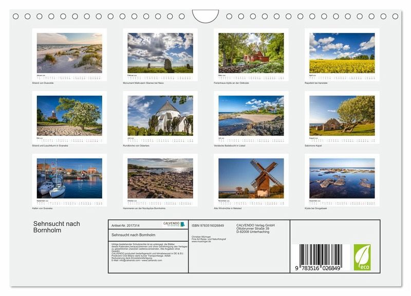 eutschland, klimabewusste Logistik.PERFEKTES GESCHENK - Kalender für Freunde und Familie, für Kinder und Erwachsene, jung und alt, zu Weihnachten, Geburtstag oder zwischendurch.VIELFALT - Bildkalender in verschiedenen Formaten, z.B. DIN A5, DIN A4, DIN A3 sowie DIN A2. Ob Naturmotiv, Gemälde oder Fotos, ideal für ein persönliches Wohlfühlambiente.Entdecken Sie die wunderschöne dänische Ostsee-Insel. von Autor(in): Christian Müringer