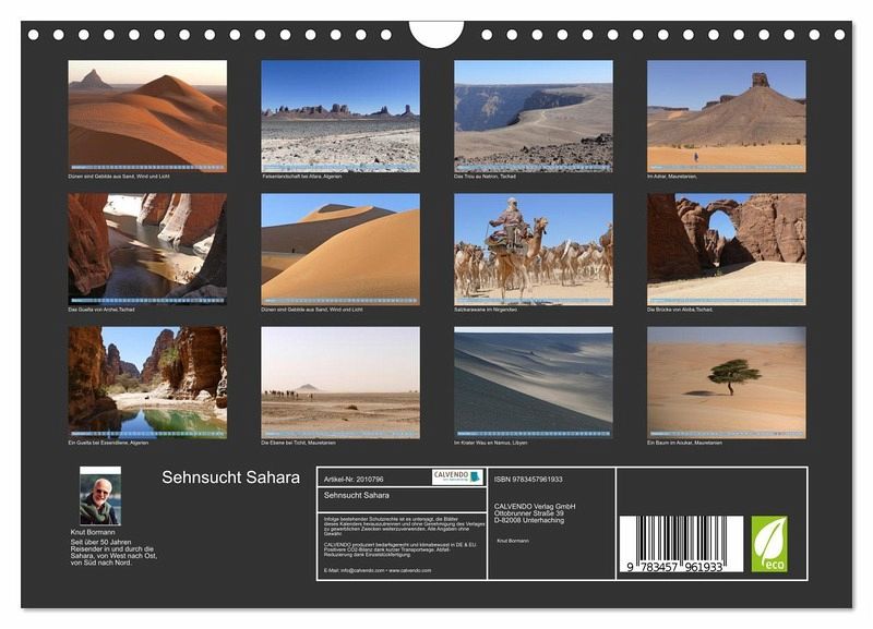 QUALITÄT - Hochwertiger Fotokalender mit 12 wunderschönen Motiven auf lichtbeständigem Bilderdruckpapier, robuste Spiralbindung mit Aufhängebügel.NACHHALTIG - deutliche Abfallreduzierung durch bedarfsgerechte Einzelstückfertigung, umweltfreundliches FSC-zertifiziertes Papier, Produktion in Deutschland, klimabewusste Logistik.PERFEKTES GESCHENK - Kalender für Freunde und Familie, für Kinder und Erwachsene, jung und alt, zu Weihnachten, Geburtstag oder zwischendurch.VIELFALT - Bildkalender in verschiedenen Formaten, z.B. DIN A5, DIN A4, DIN A3 sowie DIN A2. Ob Naturmotiv, Gemälde oder Fotos, ideal für ein persönliches Wohlfühlambiente.Bilder aus unbekannten Landschaften der Sahara. von Autor(in): Desertliner