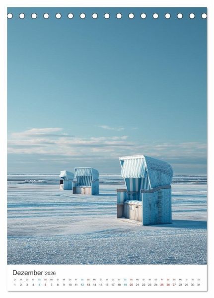 Wenn der Wind Geschichten flüstert und die Wellen ihr Lied singen, beginnen die Strandkörbe zu träumen. Eingehüllt in Schnee, gebadet in Sonnenlicht oder vom Sturm gezeichnet sind sie Symbole für Beständigkeit, für Geborgenheit und das Verlangen nach Meer. Alle hier gezeigten Bilder wurden mit Sorgfalt, Liebe und mit Hilfe einer KI generiert. Abschließend werden sie mit Bildbearbeitungsprogrammen überarbeitet und in den Kalender eingefügt.