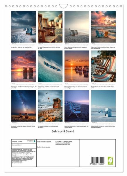 QUALITÄT - Hochwertiger Fotokalender mit 12 wunderschönen Motiven auf lichtbeständigem Bilderdruckpapier, robuste Spiralbindung mit Aufhängebügel.NACHHALTIG - deutliche Abfallreduzierung durch bedarfsgerechte Einzelstückfertigung, umweltfreundliches FSC-zertifiziertes Papier, Produktion in Deutschland, klimabewusste Logistik.PERFEKTES GESCHENK - Kalender für Freunde und Familie, für Kinder und Erwachsene, jung und alt, zu Weihnachten, Geburtstag oder zwischendurch.VIELFALT - Bildkalender in verschiedenen Formaten, z.B. DIN A5, DIN A4, DIN A3 sowie DIN A2. Ob Naturmotiv, Gemälde oder Fotos, ideal für ein persönliches Wohlfühlambiente.Dieser Kalender zeigt den Strand von seiner schönsten Seite authentisch, nordisch und zeitlos. von Autor(in): Steffen Gierok-Latniak