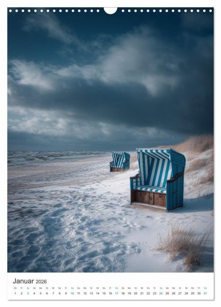Wenn der Wind Geschichten flüstert und die Wellen ihr Lied singen, beginnen die Strandkörbe zu träumen. Eingehüllt in Schnee, gebadet in Sonnenlicht oder vom Sturm gezeichnet sind sie Symbole für Beständigkeit, für Geborgenheit und das Verlangen nach Meer. Alle hier gezeigten Bilder wurden mit Sorgfalt, Liebe und mit Hilfe einer KI generiert. Abschließend werden sie mit Bildbearbeitungsprogrammen überarbeitet und in den Kalender eingefügt.