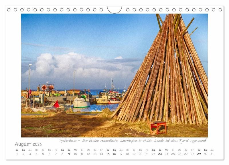 Der Westen der dänischen Halbinsel Jütland liegt an der Nordsee. Raues Klima, stürmische Wellen, immerwährender Wind und endlose Sandstrände - das zieht Naturbegeisterte als auch Ruhe und Erholung suchende Menschen nach Vestjylland.Etwa in der Mitte der Nord-Süd-Ausdehnung liegt der mit 300 Quadratkilometern Fläche größte Küstensee Dänemarks, der Ringkøbing Fjord. Der 30 Kilometer lange Brackwassersee wird zur Nordsee durch die Nehrung Holsmland Klit abgetrennt, der einzige Zugang zum Meer findet sich in dem Fischerstädtchen Hvide Sande.Holmsland Klit und die Region rund um den Fjord wird geprägt von Unmengen gemütlicher - hyggeliger - Ferienhäuser, romantischen Häfen, Kirchen und endlosen Stränden, die zum Spazieren, Verweilen und Entspannen einladen. Zusammen mit dem jüngsten, dafür höchsten Leuchtturm Dänemarks - Nr.Lyngvig Fyr, der sein Licht auf Holmsland Klit strahlt - findet sich hier eine Unzahl an natürlichen und kulturellen Sehenswürdigkeiten für den Erholungssuchenden,die Sehnsucht nach Westjütland ist nach dem ersten Besuch unvermeidlich.