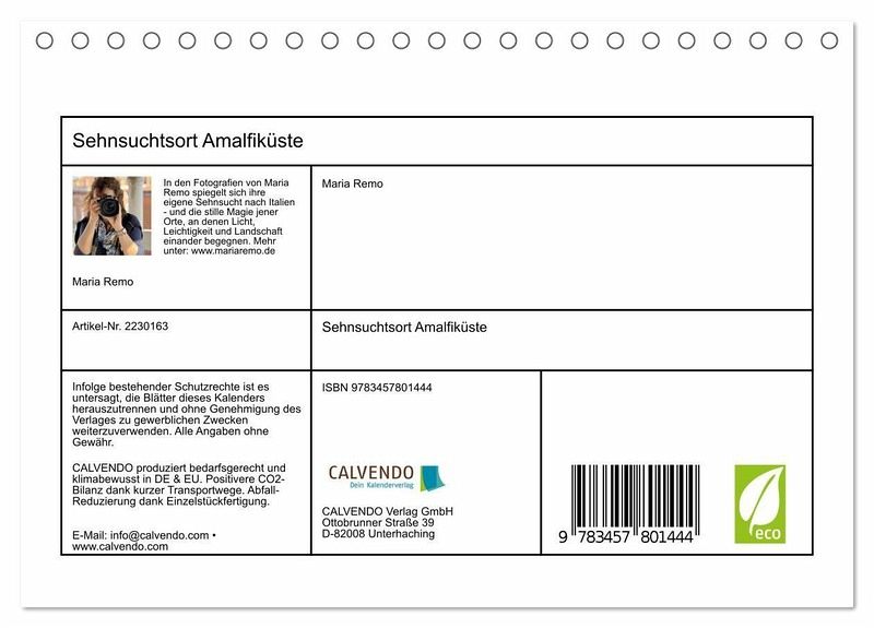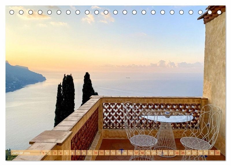 Dieser Fotokalender lädt ein zu einer Reise entlang der Amalfiküste, vorbei an Ravello, Amalfi und den stillen Terrassen über dem Tyrrhenischen Meer. Zwischen Licht, Farbe und Raum erzählen die Bilder Monat für Monat vom Leben im Süden. Zitronengärten, ikonische Pinien und das leise Rauschen des Meeres machen diesen Kalender zu einem Begleiter für Italienfans, Ästheten und alle, die sich nach Wärme und Weite sehnen.