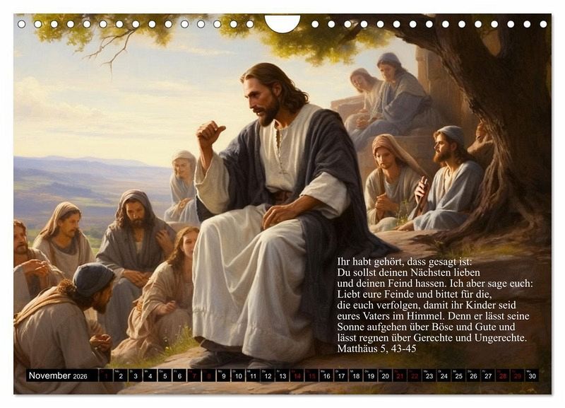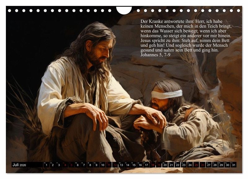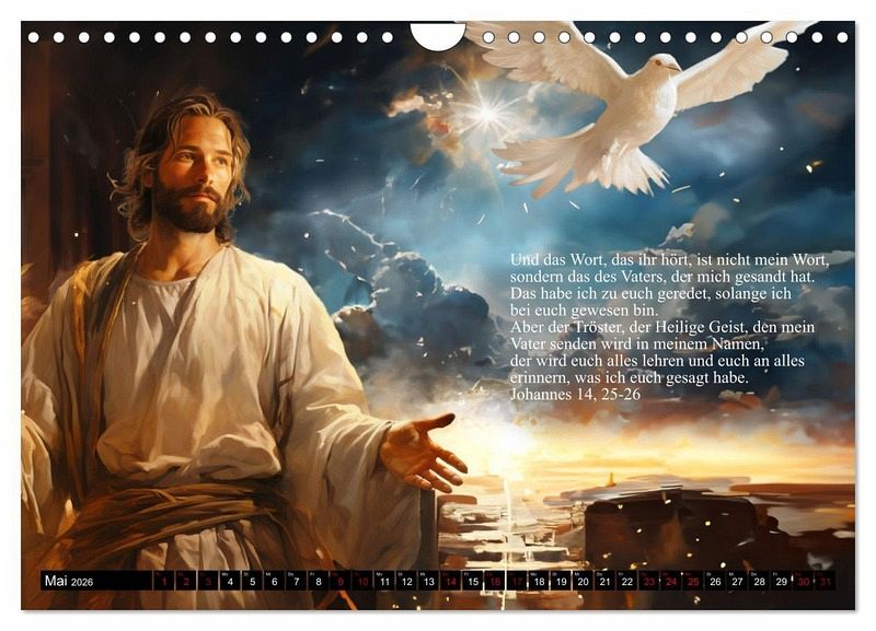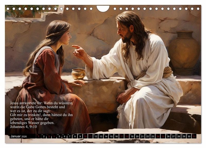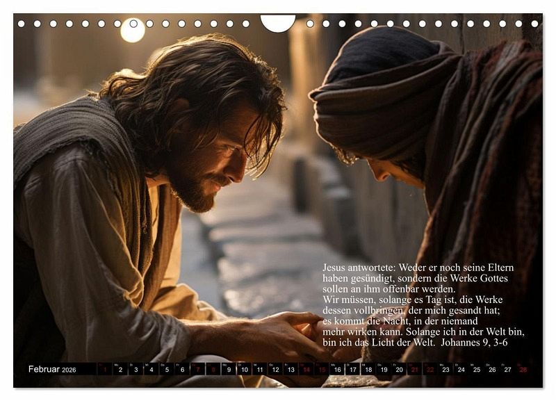 Lassen Sie sich verzaubern von diesem Kalender, der bekannte Bibelzitate des neuen Testaments aufgreift und mit einem Bild in Szene setzt. Hauptsächliches Augenmerk liegt auf dem Wirken von Jesus Christus und seinen Botschaften der Nächstenliebe und Zuversicht, die gerade in den heutigen Zeiten wieder so notwendig sind. Möge der Kalender inspirieren, die Bibel mal wieder in die Hand zu nehmen und Wegweiser für das alltägliche Leben darin zu finden.