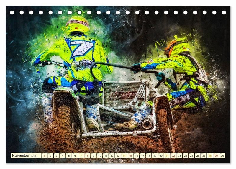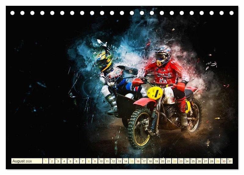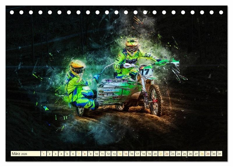 Diese Extremsportart mit ihren gewaltigen Sprüngen ist einmalig. Richtig spannend wird es im Seitenwagen Motocross, wo der Beifahrer durch Gewichtsverlagerung eingreift. Das klingt einfach, erfordert jedoch Können, Erfahrung, Training und viel Schneid. Der Fotokünstler Peter Roder hat beeindruckende Bilder gestaltet, ein Kalender mit farbenprächtigen Bildern für das ganze Jahr.