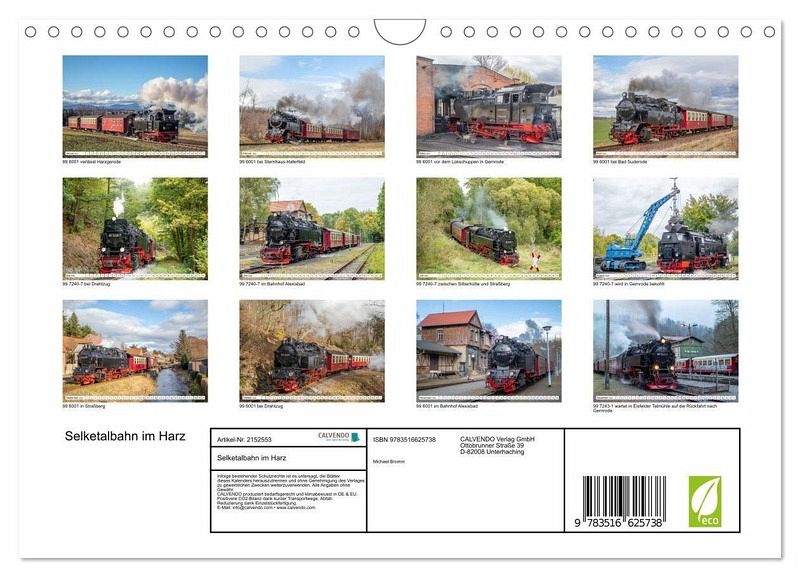 QUALITÄT - Hochwertiger Fotokalender mit 12 wunderschönen Motiven auf lichtbeständigem Bilderdruckpapier, robuste Spiralbindung mit Aufhängebügel.NACHHALTIG - deutliche Abfallreduzierung durch bedarfsgerechte Einzelstückfertigung, umweltfreundliches FSC-zertifiziertes Papier, Produktion in Deutschland, klimabewusste Logistik.PERFEKTES GESCHENK - Kalender für Freunde und Familie, für Kinder und Erwachsene, jung und alt, zu Weihnachten, Geburtstag oder zwischendurch.VIELFALT - Bildkalender in verschiedenen Formaten, z.B. DIN A5, DIN A4, DIN A3sowie DIN A2. Ob Naturmotiv, Gemälde oder Fotos, ideal für ein persönliches Wohlfühlambiente.Dampfloks auf der Selketalbahn von Autor(in): Michael Bromm