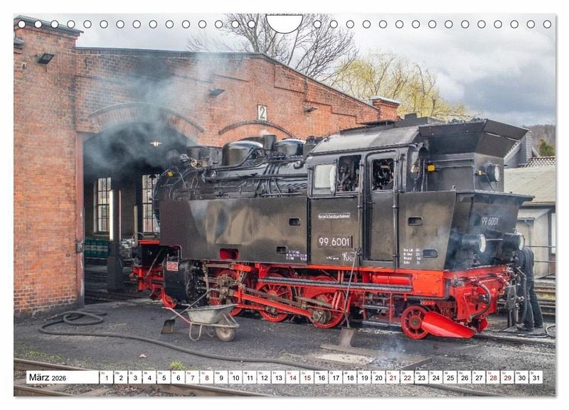 März: 99 6001 vor dem Lokschuppen in Gernrode