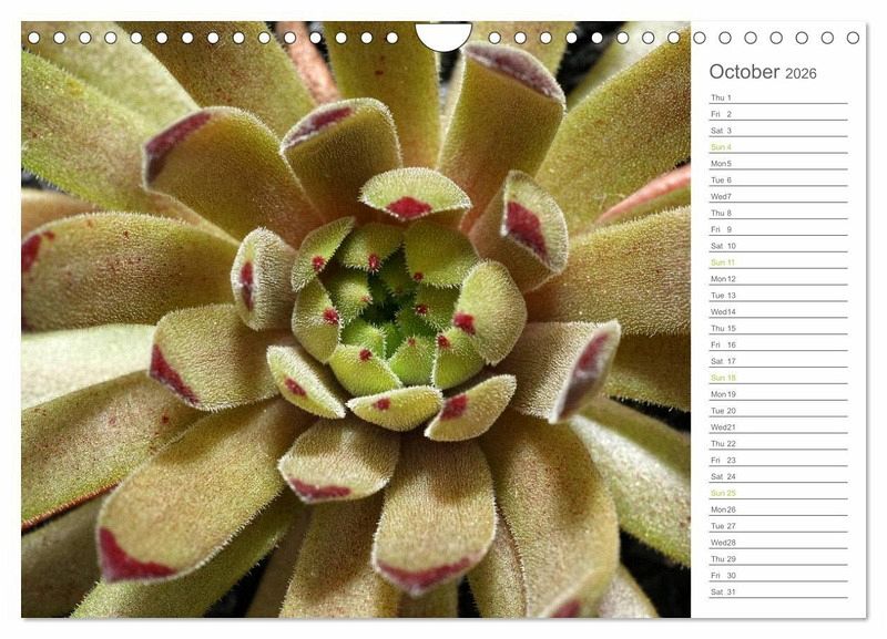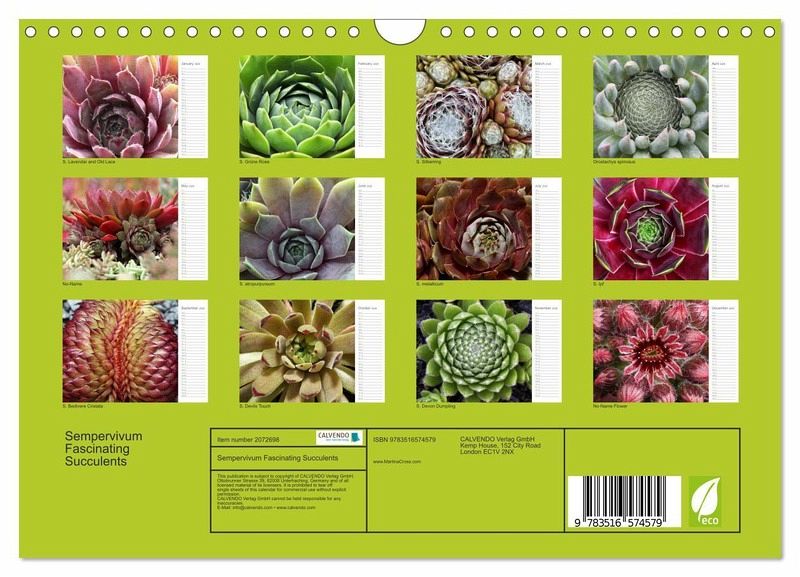 QUALITY - High-quality photo calendar with 12 beautiful images on light-resistant paper, robust spiral binding with hanger.SUSTAINABLE - Significant waste reduction due to print-on-demand production, environmentally friendly FSC-certified paper, produced in the UK, climate-conscious logistical processes.PERFECT GIFT - calendars for friends and family, for children, all ages and all occasions, from Christmas to birthdays and everything in between.LOTS OF CHOICE - Wall calendars in different sizes (DIN A4 and DIN A3), for any topic and personal taste, featuring photography, painting and illustrations.Sempervivum, 12 wonderful portraits of the fascinating succulents, author: Martina Cross