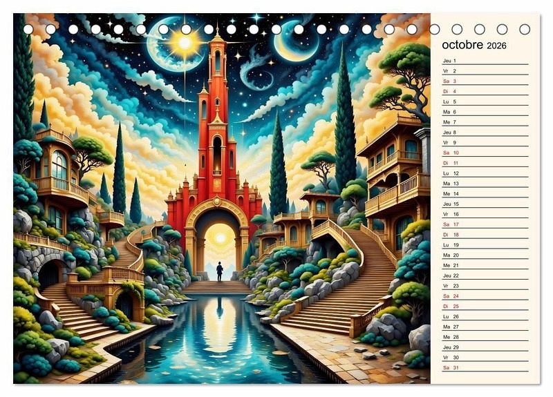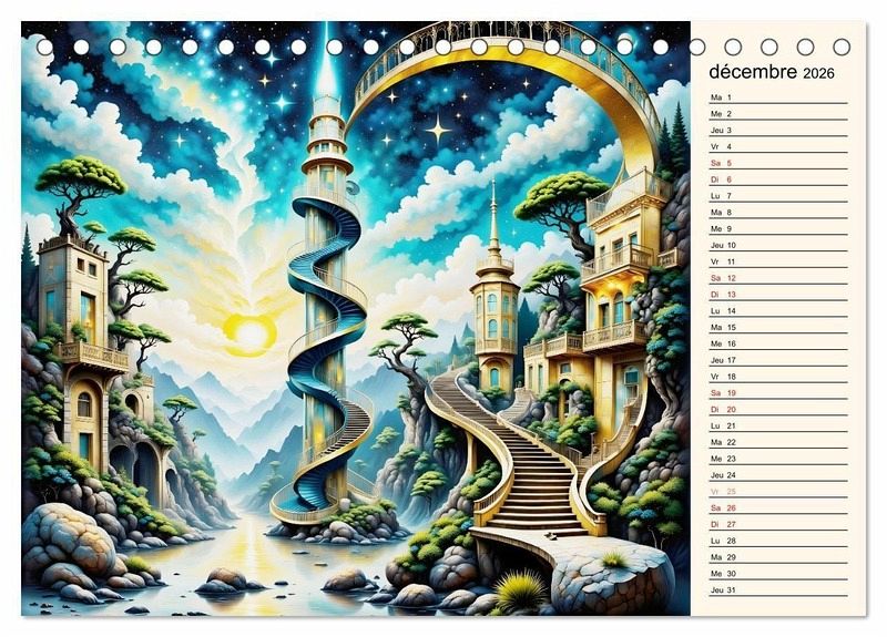 Imaginez que chaque mois, vous ouvrez une porte sur un monde qui n'existe que dans vos rêves les plus fous, créé et perfectionné par l'intelligence artificielle. Chaque mois commence par une image qui vous emmène dans un voyage solitaire, où la nature, le ciel et les flux de lumière scintillants dansent en harmonie magique. Plongez dans l'immensité de l'horizon, traversez des gorges scintillantes de lumière et perdez-vous dans un monde surréaliste et séduisant. Ce calendrier est une fusion entre fantaisie surréaliste et réalité époustouflante, vous offrant des moments d'inspiration pure. Sentez le calme apaisant de chaque scène et laissez-vous envelopper par la magie de la solitude.