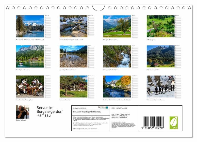 Dieter Wilczek - Erlebnisfotograf und naturverbunden - besucht die Ramsau seit vielen Jahren zu jeder Jahreszeit. Wie seine Aufnahmen in diesem Planer zeigen, hat jede Jahreszeit ihren eigenen, unwiderstehlichen Charme: Mystisch im Winterkleid, geheimnisvoll im Nebel und farbenprächtig bei Kaiserwetter im Sommer und zur Wanderzeit im goldenen Herbst...