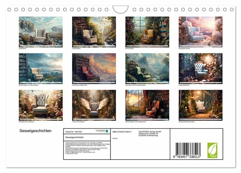 Tauchen Sie ein in eine Welt voller Lesefreuden und Fantasie mit unserem wunderschönen KI-Kalender für Leseratten! Jeder Monat präsentiert eine zauberhafte Illustration eines gemütlichen Ohrensessels, umgeben von einem Meer aus Büchern, eingebettet in atemberaubende Fantasielandschaften. Lassen Sie sich von diesen visuellen KI-Meisterwerken inspirieren, während Sie durch das Jahr blättern und Ihre Lesereisen durch unbekannte Welten beginnen. Jeder Blick auf diesen Kalender wird Ihre Vorstellungskraft beflügeln und Sie dazu ermutigen, in die Seiten Ihrer Lieblingsbücher einzutauchen. Holen Sie sich noch heute unseren Kalender und erleben Sie das Vergnügen, in der Welt der Bücher zu schweben!