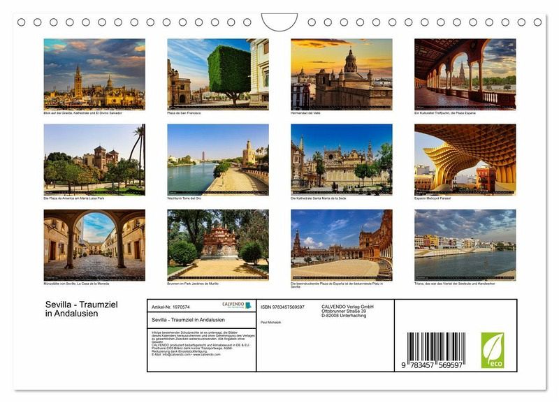 QUALITÄT - Hochwertiger Fotokalender mit 12 wunderschönen Motiven auf lichtbeständigem Bilderdruckpapier, robuste Spiralbindung mit Aufhängebügel.NACHHALTIG - deutliche Abfallreduzierung durch bedarfsgerechte Einzelstückfertigung, umweltfreundliches FSC-zertifiziertes Papier, Produktion in Deutschland, klimabewusste Logistik.PERFEKTES GESCHENK - Kalender für Freunde und Familie, für Kinder und Erwachsene, jung und alt, zu Weihnachten, Geburtstag oder zwischendurch.VIELFALT - Bildkalender in verschiedenen Formaten, z.B. DIN A5, DIN A4, DIN A3 sowie DIN A2. Ob Naturmotiv, Gemälde oder Fotos, ideal für ein persönliches Wohlfühlambiente.Sevilla, die andalusische Schönheit mit unvergesslichen Höhepunkten von Autor(in): Paul Michalzik