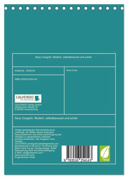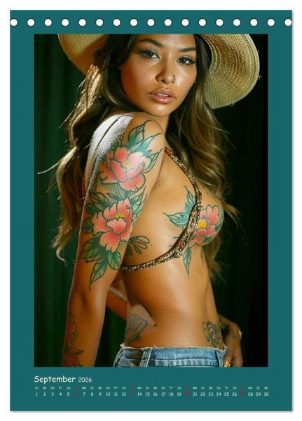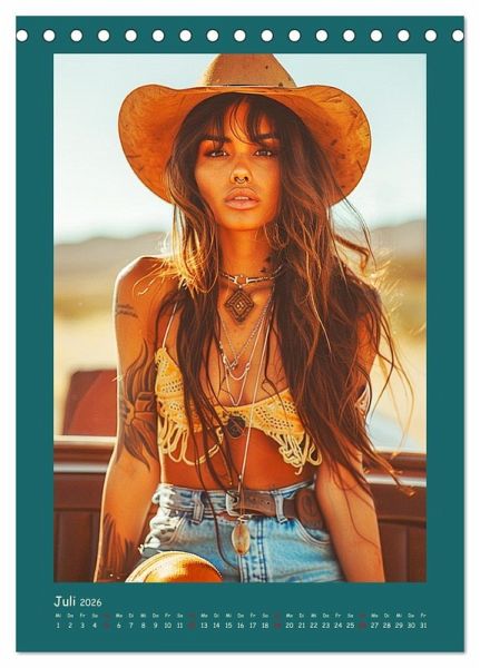 Tauchen Sie ein in die faszinierende Welt moderner Cowgirls, die Freiheit und Wildheit verkörpern. Jeder Monat wurde mit Hilfe von KI erstellt und präsentiert eine neue, verführerische Seite dieser starken und coolen Frauen. Mit Tattoos und frechem Charme brechen sie mit Konventionen und setzen ein kraftvolles Statement. Ein Kalender, der Selbstbewusstsein und erotische Ausstrahlung in jedem Bild vereint.