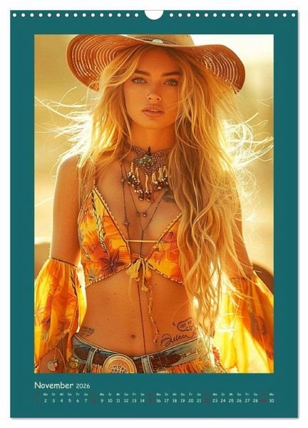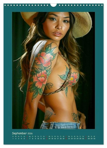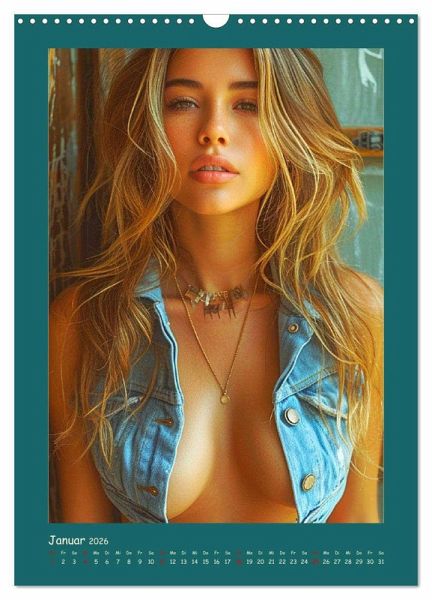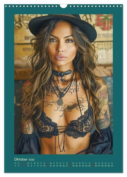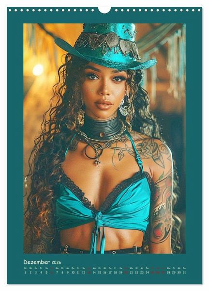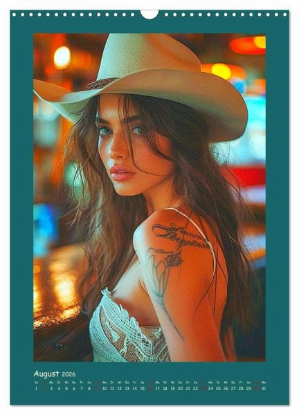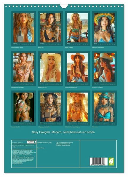Tauchen Sie ein in die faszinierende Welt moderner Cowgirls, die Freiheit und Wildheit verkörpern. Jeder Monat wurde mit Hilfe von KI erstellt und präsentiert eine neue, verführerische Seite dieser starken und coolen Frauen. Mit Tattoos und frechem Charme brechen sie mit Konventionen und setzen ein kraftvolles Statement. Ein Kalender, der Selbstbewusstsein und erotische Ausstrahlung in jedem Bild vereint.