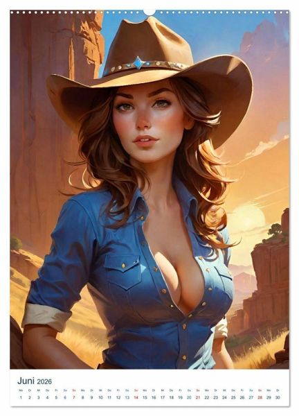 Dieser Kalender mit sexy Cowgirls bietet ästhetische Bilder, die die Schönheit und den Charme des Wilden Westens einfangen. Die ansprechenden Bilder, die Steffani Lehmann mit Unterstützung einer KI editiert hat, präsentieren Cowgirls in verführerischen Outfits.