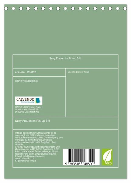 QUALITÄT - Hochwertiger Fotokalender mit 12 wunderschönen Motiven auf lichtbeständigem Bilderdruckpapier, robuste Spiralbindung.NACHHALTIG - deutliche Abfallreduzierung durch bedarfsgerechte Einzelstückfertigung, umweltfreundliches FSC-zertifiziertes Papier, Produktion in Deutschland, klimabewusste Logistik.PERFEKTES GESCHENK - Kalender für Freunde undFamilie, für Erwachsene, zu Weihnachten, Geburtstag oder zwischendurch.VIELFALT - Bildkalender in verschiedenen Formaten, z.B. DIN A5, DIN A4, DIN A3 sowie DIN A2. Ob Naturmotiv, Gemälde oder Fotos, ideal für ein persönliches Wohlfühlambiente.Pin-up Welt voller Eleganz von Autor(in): Liselotte Brunner-Klaus