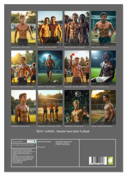 Entdecke pure Erotik der nackten Männer in diesem sexy Männerkalender voller heißer, muskulöser Fußballspieler. Nackte Männerkörper, starke Muskeln und perfekte Sixpacks stehen hier im Mittelpunkt - von Torwart bis Kapitän, jeder Spieler ein erotisches Highlight. Ob als sexy Männerkalender für Frauen, als gay Erotik-Kalender oder für alle, die sportliche Männer mit Sixpack lieben - dieser mit KI generierte Fußballkalender kombiniert Sport, Erotik und Ästhetik auf höchstem Niveau. Lass dich jeden Monat neu von nackten Körpern, dynamischen Szenen und sportlicher Verführung des Fußballs begeistern!