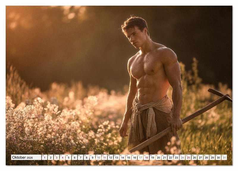 Entdecke einen erotischen Männerkalender voller sexy Bauern mit Muskeln und Charme. Zwölf naturverbundene Männer zeigen sich mit freiem Oberkörper, Sixpack und starkem Körper im rustikalen Landleben. Ob beim Heumachen, Traktorfahren oder auf dem Feld, diese Landmänner bringen jedes Motiv zum Glühen. Ein echter Hingucker für Fans von durchtrainierten Männern, Naturburschen und erotischer Fotokunst. Die Bilder wurden mit moderner KI erstellt und zeigen Bauern beim Landleben so sexy und authentisch wie nie. Ein Kalender voller Erotik, Männlichkeit und Dorfleben.