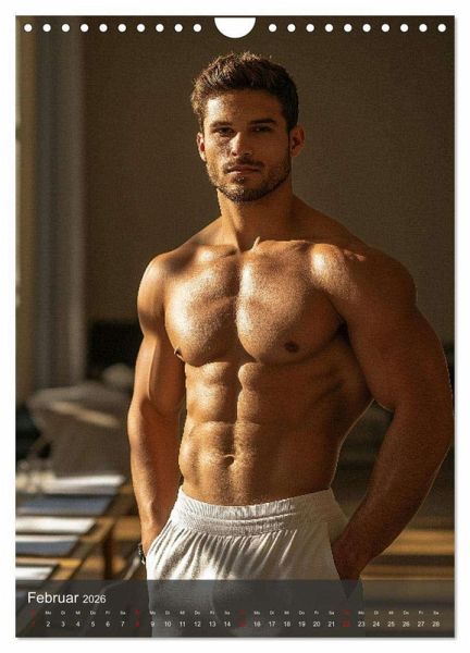 Entdecke pure Erotik mit diesem Männerkalender voller nackter, muskulöser Männer. Verführerische Männer mit Sixpack und starken Muskeln lassen Herzen höherschlagen. Jeder Monat zeigt durchtrainierte Körper in sinnlichen Posen, die Männlichkeit und Kraft perfekt zur Geltung bringen. Ob für Fans von nackten Muskelmännern oder als erotischer Hingucker - dieser mit KI generierte Männerkalender vereint Stärke und Verführung in einer aufregenden Kombination. Lass dich von diesen sinnlichen Muskelmännern begeistern und genieße jeden Moment.