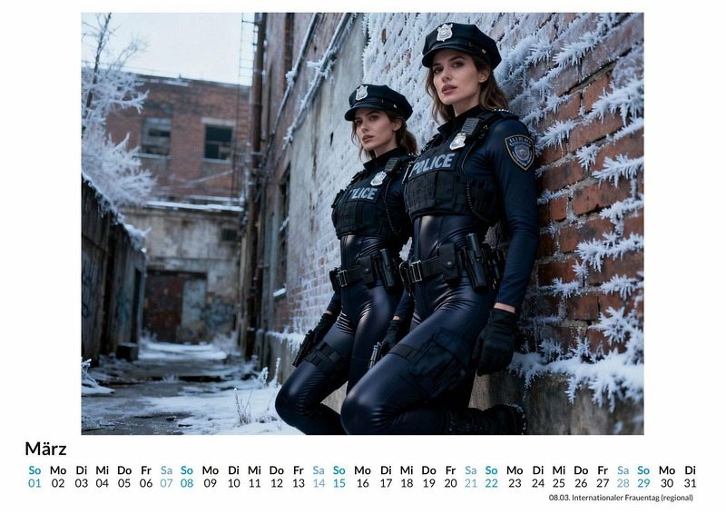 Hinter der strengen Fassade der Autorität verbirgt sich eine Welt voller unerwarteter Facetten. Der Kalender "Sexy Polizistinnen" öffnet die Tür zu einer Szenerie, in der Uniformen mehr enthüllen als sie verbergen und das Spiel mit der Macht eine neue Dimension erreicht. Dieser Kalender ist eine passende Wahl für: Liebhaber von Erotikkalendern mit einem Faible für Uniformen. Als provokantes Dekorationselement für private Räume. Sammler von Pin up Motiven mit einem modernen Twist. Jedes Monatsblatt zeigt eine andere Szene, die mit dem Kontrast von Autorität und Freizügigkeit spielt. Die Darstellerinnen, nur mit Uniform BH, Minirock und Polizeimütze bekleidet, posieren mit Handschellen an eine Wand gedrückt. Diese fesselnden Motive wurden durch digitale Prozesse erschaffen und präsentieren eine fantasievolle Interpretation des Themas. Beim Kauf dieses Kalenders kann Folgendes erwartet werden: Zwölf Monatsmotive und ein Deckblatt im einheitlichen Thema. Darstellungen von Frauen in aufreizender Polizei Optik. Ein praktischer Wandkalender mit übersichtlichem Kalendarium für das ganze Jahr. Der Kalender "Sexy Polizistinnen" ist mehr als nur ein Zeitmesser; er ist ein Statement und ein Blickfang für das ganze Jahr. Eine Sammlung von Bildern, die provoziert und fasziniert. Es lohnt sich, einen genaueren Blick auf die einzelnen Monatsblätter zu werfen.