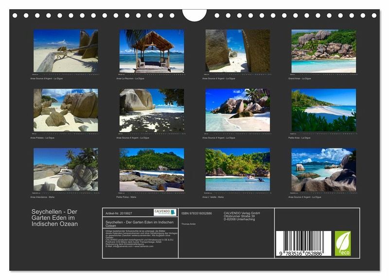 QUALITÄT - Hochwertiger Fotokalender mit 12 wunderschönen Motiven auf lichtbeständigem Bilderdruckpapier, robuste Spiralbindung mit Aufhängebügel.NACHHALTIG - deutliche Abfallreduzierung durch bedarfsgerechte Einzelstückfertigung, umweltfreundliches FSC-zertifiziertes Papier, Produktion in Deutschland, klimabewusste Logistik.PERFEKTES GESCHENK - Kalender für Freunde und Familie, für Kinder und Erwachsene, jung und alt, zu Weihnachten, Geburtstag oder zwischendurch.VIELFALT - Bildkalender in verschiedenen Formaten, z.B. DIN A5, DIN A4, DIN A3 sowie DIN A2. Ob Naturmotiv, Gemälde oder Fotos, ideal für ein persönliches Wohlfühlambiente.Mitten im Indischen Ozean findet man ein Naturparadies von traumhafter Schönheit. Mit diesem Kalender möchte ich Ihnen einen kleinen Eindruck von der einzigartigen Inselwelt der Seychellen vermitteln. von Autor(in): Thomas Amler