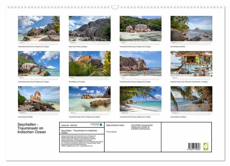 QUALITÄT - Hochwertiger Fotokalender mit 12 wunderschönen Motiven auf lichtbeständigem Bilderdruckpapier, robuste Spiralbindung mit Aufhängebügel.NACHHALTIG - deutliche Abfallreduzierung durch bedarfsgerechte Einzelstückfertigung, umweltfreundliches FSC-zertifiziertes Papier, Produktion in Deutschland, klimabewusste Logistik.PERFEKTES GESCHENK - Kalender für Freunde und Familie, für Kinder und Erwachsene, jung und alt, zu Weihnachten, Geburtstag oder zwischendurch.VIELFALT - Bildkalender in verschiedenen Formaten, z.B. DIN A5, DIN A4, DIN A3 sowie DIN A2. Ob Naturmotiv, Gemälde oder Fotos, ideal für ein persönliches Wohlfühlambiente.Fotos der Inseln Mahe und La Digue (Seychellen). von Autor(in): Thomas Bugdoll