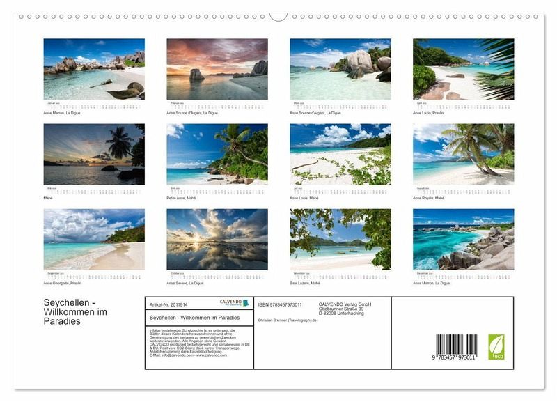 Dieser Kalender bringt ihnen ein Stück Traumurlaub in die eigenen vier Wände und zeigt Ihnen Monat für Monat die schönsten Strände der Seychellen.