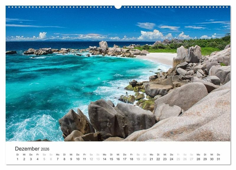 Dieser Kalender bringt ihnen ein Stück Traumurlaub in die eigenen vier Wände und zeigt Ihnen Monat für Monat die schönsten Strände der Seychellen.