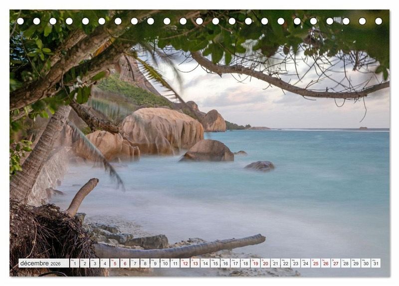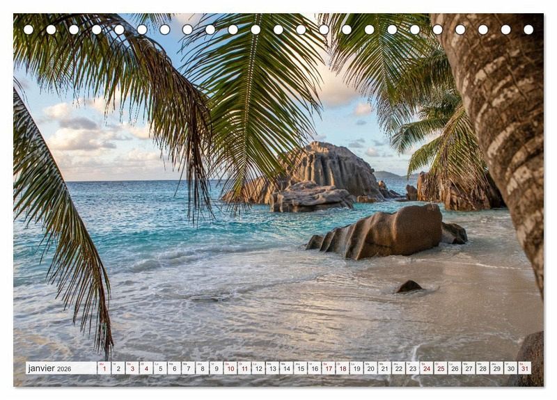 Découvrez le paradis. Laissez-vous enchanter par les plages à couper le souffle et la nature luxuriante des Seychelles ! Avec notre calendrier exclusif, nous vous emmenons mois après mois sur les plages de rêve de l'Océan Indien. Vos vacances personnelles à la maison Le calendrier vous montre des paysages spectaculaires sur Mahé et La Digue. Découvrez la magie des îles qui captive chaque année des milliers de voyageurs. Parfait pour les amoureux de la nature et les passionnés de voyages. Ce calendrier est plus qu'un simple chronomètre : c'est une fenêtre sur l'un des plus beaux endroits du monde. Offrez-vous ou offrez à vos proches un morceau de vacances et laissez-vous inspirer par la beauté des Seychelles. Commandez maintenant et ramenez les Seychelles à la maison.