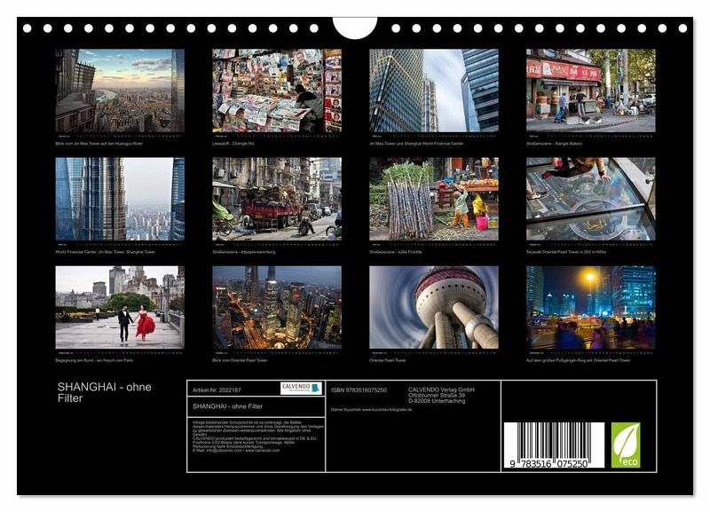 QUALITÄT - Hochwertiger Fotokalender mit 12 wunderschönen Motiven auf lichtbeständigem Bilderdruckpapier, robuste Spiralbindung mit Aufhängebügel.NACHHALTIG - deutliche Abfallreduzierung durch bedarfsgerechte Einzelstückfertigung, umweltfreundliches FSC-zertifiziertes Papier, Produktion in Deutschland, klimabewusste Logistik.PERFEKTES GESCHENK - Kalender für Freunde und Familie, für Kinder und Erwachsene, jung und alt, zu Weihnachten, Geburtstag oder zwischendurch.VIELFALT - Bildkalender in verschiedenen Formaten, z.B. DIN A5, DIN A4, DIN A3 sowie DIN A2. Ob Naturmotiv, Gemälde oder Fotos, ideal für ein persönliches Wohlfühlambiente.Fotografien - Szenen in Shanghai City von Autor(in): Rainer Kuczinski