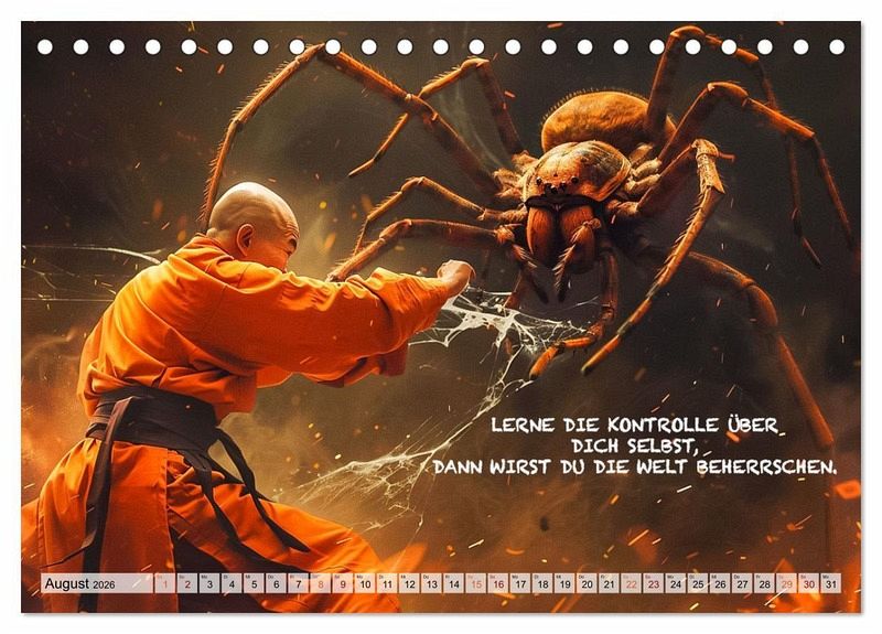 Tauchen Sie ein in die faszinierende Welt der Inspiration. Dieser einzigartige Kalender "Shaolin Mönche - Weisheit und Disziplin" begleitet Sie durch das Jahr mit beeindruckenden Ilustrationen und inspirierenden Zitaten.