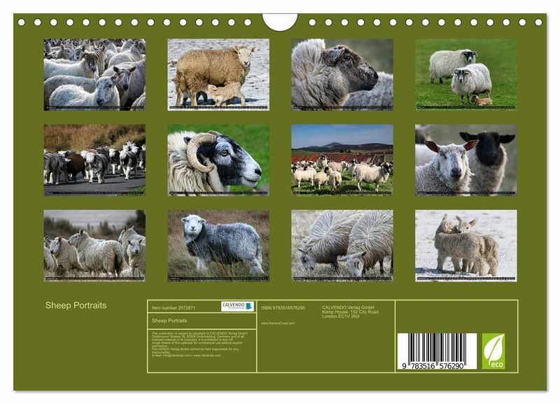 QUALITY - High-quality photo calendar with 12 beautiful images on light-resistant paper, robust spiral binding with hanger.SUSTAINABLE - Significant waste reduction due to print-on-demand production, environmentally friendly FSC-certified paper, produced in the UK, climate-conscious logistical processes.PERFECT GIFT - calendars for friends and family, for children, all ages and all occasions, from Christmas to birthdays and everything in between.LOTS OF CHOICE - Wall calendars in different sizes (DIN A4 and DIN A3), for any topic and personal taste, featuring photography, painting and illustrations.Discover 12 beautiful portraits of sheep in the countryside, author: Martina Cross
