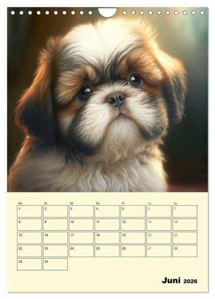 Sie haben ihren Ursprung in Tibet und begeistern ihre Besitzer mit ihrer kecken und fröhlichen Art. Shih Tzus sind nicht nur äußerst niedlich, sondern auch ziemlich klug und aufgeweckt. Dieser Kalender wurde mit KI erstellt und es macht großen Spaß, die kleinen Löwen vom "Dach der Welt" zu betrachten.
