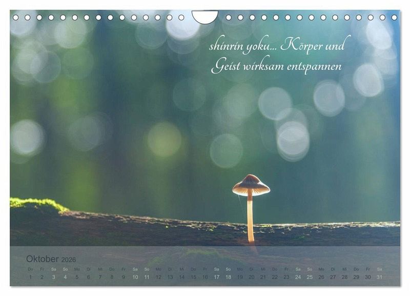 Inzwischen hat diese wohltuende und beruhigende Wald-Therapie auch Europa erreicht. Lassen Sie sich inspirieren von den 12 hochwertigen Fotografien dieses Kalenders, und nehmen Sie die Sprüche auf den einzelnen Seiten als Ansporn, heute mal dem Alltag zu entfliehen und in den Wald einzutauchen.