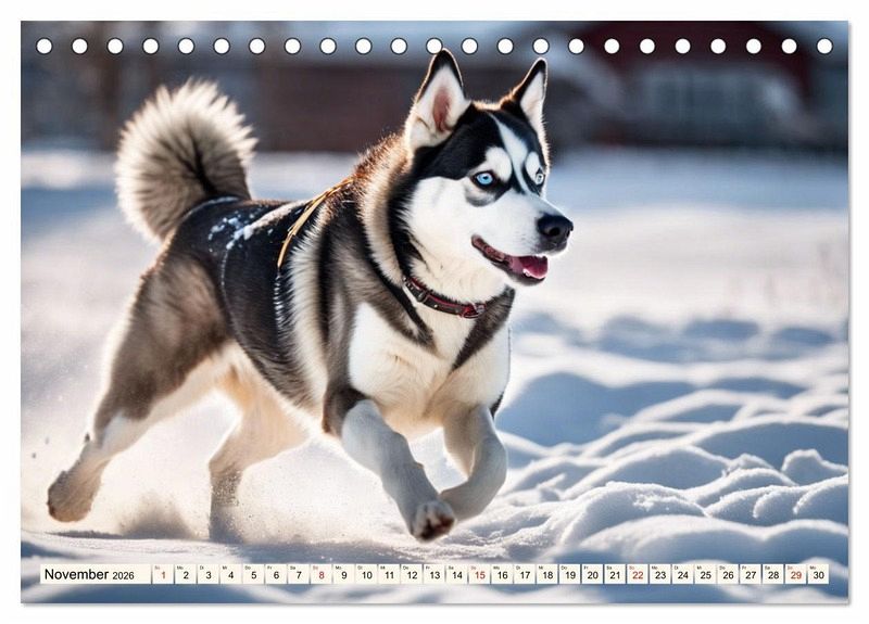Der Siberian Husky ist ein Extremsportler, der für seine unglaubliche Ausdauer und Kraft bekannt ist. Als sogenannter Schlittenhund ist er ein sehr ausdrucksstarker Hund, der geistig und körperlich unbedingt gefordert werden muss. Gelingt dies, erweist er sich als liebevoller und treuer Familienhund. Für den Extremsportler reichen ein paar Gassirunden am Tag keinesfalls aus, er will recht zügig gerne 20 Kilometer und mehr pro Tag laufen. Die ausdrucksstarken Bilder entstanden mithilfe der KI.