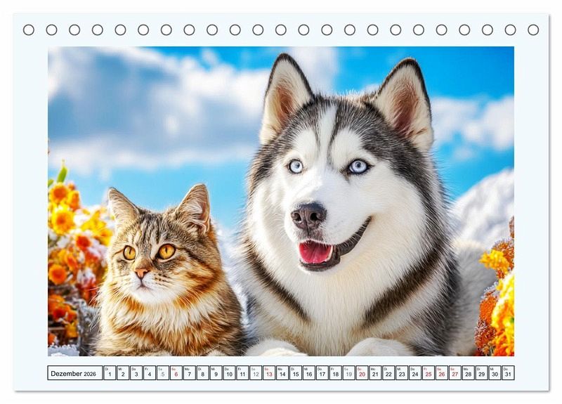 Dieser Kalender widmet sich einer der faszinierendsten Hunderassen der Welt: dem Siberian Husky. Bekannt für sein wolfsähnliches Aussehen, sein freundliches Wesen und seine beeindruckende Ausdauer, steht der Husky hier im Mittelpunkt. Alle Bilder wurden mit der Hilfe von KI erstellt und zeigen ihn in unterschiedlichsten Szenen - mal ausgelassen, mal verspielt, mal ruhend. Entstanden ist eine emotionale Hommage an einen treuen Gefährten, der Arbeit und Beschäftigung liebt und jedes Herz erobert.