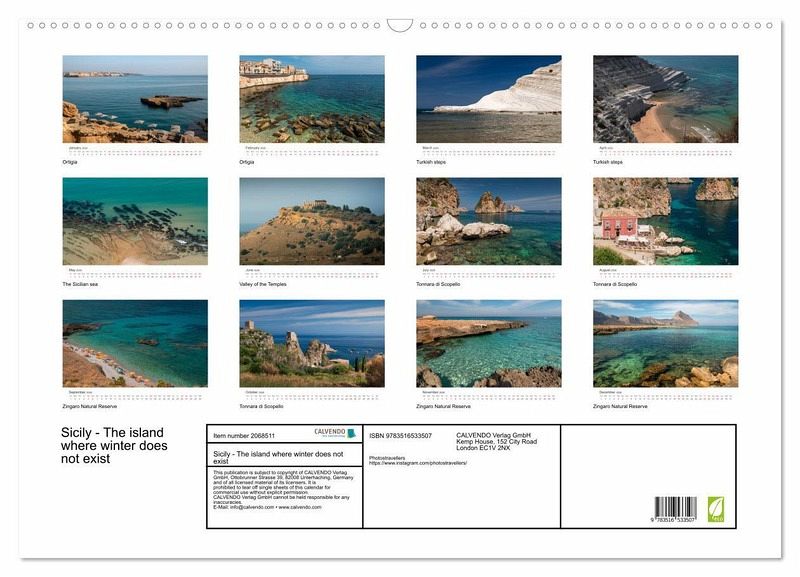 QUALITY - High-quality photo calendar with 12 beautiful images on light-resistant paper, robust spiral binding with hanger.SUSTAINABLE - Significant waste reduction due to print-on-demand production, environmentally friendly FSC-certified paper, produced in the UK, climate-conscious logistical processes.PERFECT GIFT - calendars for friends and family, for children, all ages and all occasions, from Christmas to birthdays and everything in between.LOTS OF CHOICE - Wall calendars in different sizes (DIN A4 and DIN A3), for any topic and personal taste, featuring photography, painting and illustrations.The sea all year round, author: Photostravellers