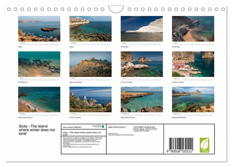 QUALITY - High-quality photo calendar with 12 beautiful images on light-resistant paper, robust spiral binding with hanger.SUSTAINABLE - Significant waste reduction due to print-on-demand production, environmentally friendly FSC-certified paper, produced in the UK, climate-conscious logistical processes.PERFECT GIFT - calendars for friends and family, for children, all ages and all occasions, from Christmas to birthdays and everything in between.LOTS OF CHOICE - Wall calendars in different sizes (DIN A4 and DIN A3), for any topic and personal taste, featuring photography, painting and illustrations.The sea all year round, author: Photostravellers