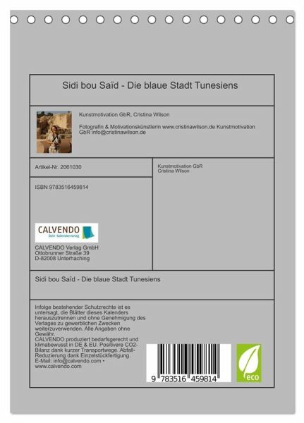 QUALITÄT - Hochwertiger Fotokalender mit 12 wunderschönen Motiven auf lichtbeständigem Bilderdruckpapier, robuste Spiralbindung.NACHHALTIG - deutliche Abfallreduzierung durch bedarfsgerechte Einzelstückfertigung, umweltfreundliches FSC-zertifiziertes Papier, Produktion in Deutschland, klimabewusste Logistik.PERFEKTES GESCHENK - Kalender für Freunde und Familie, für Kinder und Erwachsene, jung und alt, zu Weihnachten, Geburtstag oder zwischendurch.VIELFALT - Bildkalender in verschiedenen Formaten, z.B. DIN A5, DIN A4, DIN A3 sowie DIN A2. Ob Naturmotiv, Gemälde oder Fotos, ideal für ein persönliches Wohlfühlambiente.Anspruchsvolle Fotografien von Cristina Wilson, auf ihrer Reise durch eine der malerischsten Städte Tunesiens. von Autor(in): cristinawilson