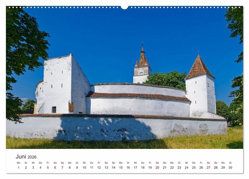 April: Die Kirchenburg in Deutsch-Weisskirch, eine evangelische Wehrkirche, umbaut wie eine Festung, in Siebenbürgen.