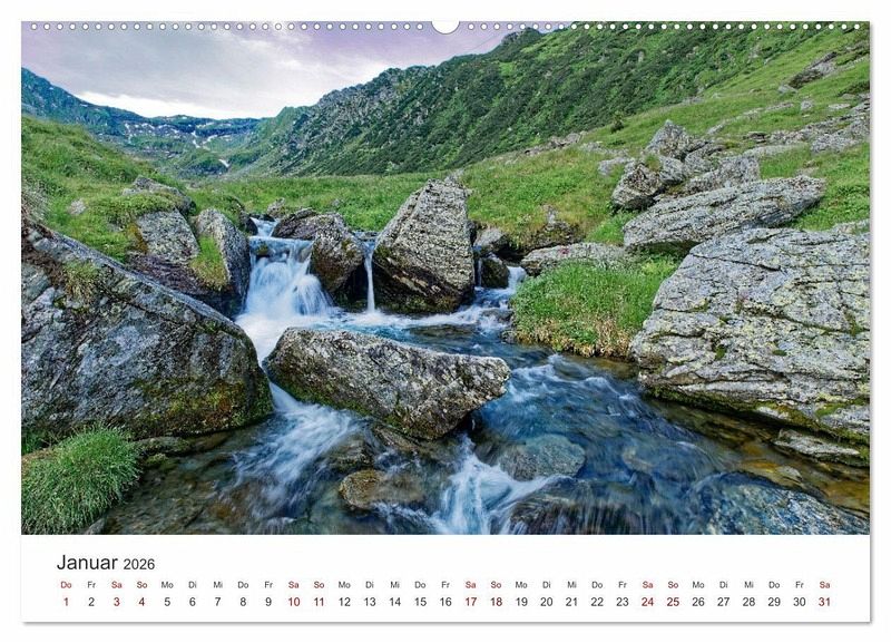 Januar: Felsige Landschaft am oberen Verlauf des Balea Baches im Fagaras Gebirge in Rumänien