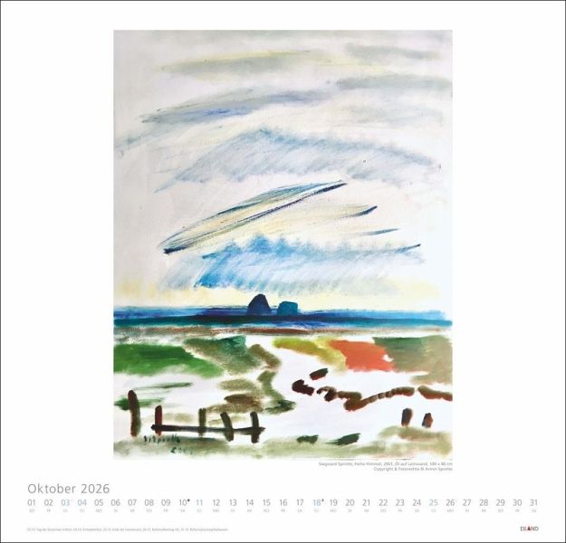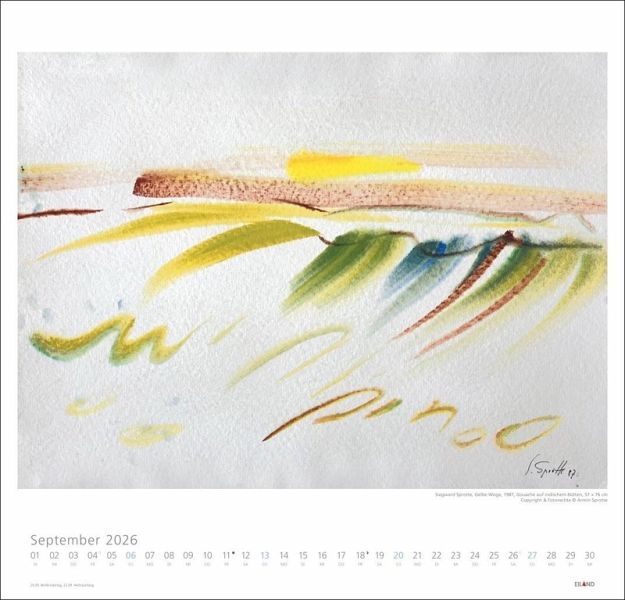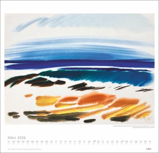 - Kraftvoll und unverwechselbar: Wandkalender im Format 48 x 46 cm mit Gemälden des bekannten deutschen Künstlers- Impressionen aus Sylt: Siegward Sprotte setzt die beliebte Nordseeinsel in den Fokus seiner Malerei- Beeinflusst von den Meistern der Kalligraphie: Abstraktionen von Wellen, Meer und Küste- Faszinierende maritime Motive: Kunstkalender im Großformat von Eiland im Athesia Kalenderverlag