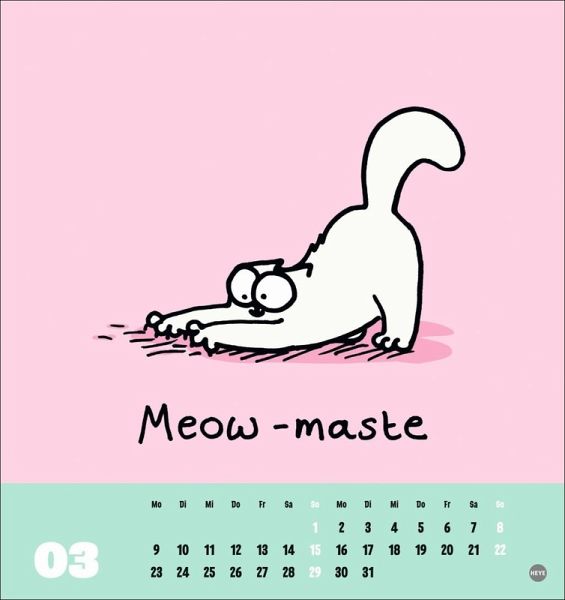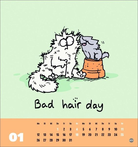 - Der vierbeinige YouTube-Star in einem Monats-Tischkalender zum Aufstellen: Jedes Kalenderblatt zeigt die übermütige Comic-Katze und einen lustigen Spruch- Simons Katze hat es faustdick hinter den Ohren - deshalb sorgt dieser Postkarten-Kalender garantiert für gute Laune!- Nicht nur was für Katzenfreunde: Der launige Stubentiger ist eine Kultfigur und begeistert seit Jahren Cartoon-Fans rund um den Globus- Passt auf jeden Schreibtisch: Der kleine Kalender im Format 16 x 17 cm mit den witzigen Cartoons von Simon Tofield- Katzen Comics bei Heye im Athesia Kalenderverlag: Katzenkalender für Tier-Fans