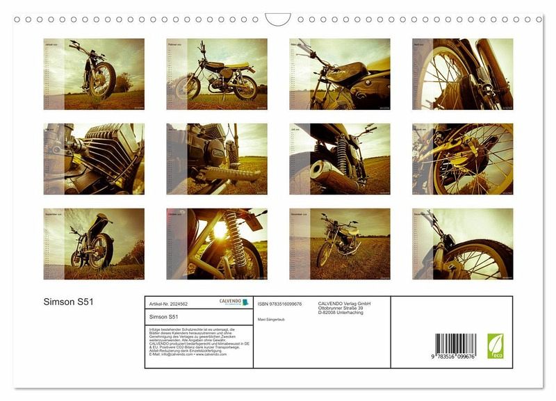 Für jeden Simson-Fan ein Muss! In diesem Kalender wird die S51 in verschiedenen Perspektiven und ihre Details gezeigt.