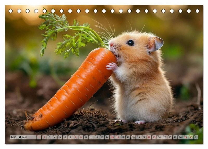 Dieser Kalender zeigt eine bezaubernde Sammlung von Goldhamstern in drolligen Bildern, die mit modernster KI-Technologie erstellt wurden. Jeder Monat präsentiert die niedlichen und einzigartigen Momente eines Goldhamsters, von verspielten Posen bis hin zu ruhigen Augenblicken der Entspannung. Durch die Kraft der KI entstehen lebendige und fotorealistische Darstellungen dieser flauschigen Begleiter. Ein Kalender, der die Liebe und den Charme dieser kleinen Tiere auf eine neue, kreative Weise einfängt.
